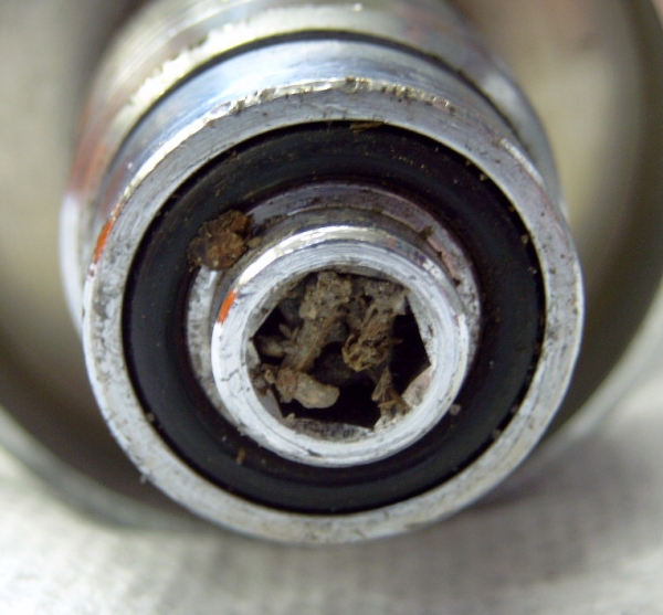 Dieser DIN Anschluss ist mit verschiedenen Blüten und Erdreich zugesetzt. Der Automat wurde mit hoher Wahrscheinlichkeit durch den Schmutz gezogen. Eine Schutzkappe hat der DIN Anschluss wohl noch nie gesehen.